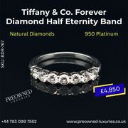 Add timeless sparkle to your collection with this authentic Tiffany & Co. Forever Diamond Half Eternity Band. Featuring brilliant round diamonds set in sleek platinum, this iconic ring embodies elegance, luxury, and lasting love. Perfect as a wedding band, anniversary gift, or luxury keepsake, this piece is certified, pre-owned, and in excellent condition — offering you exceptional value without compromising on quality.